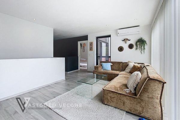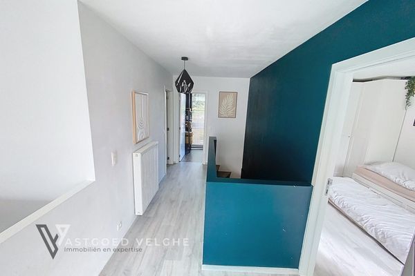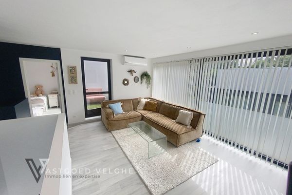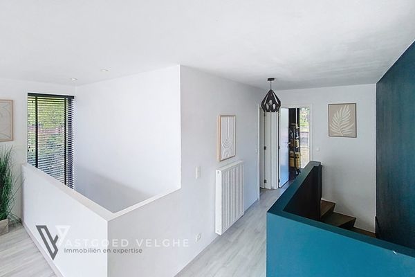 - Verdiep: 2 ruime slaapkamers, vide, badkamer met inloopdouche en dubbele lavabo, terras, woonkamer, vide .