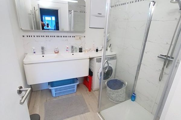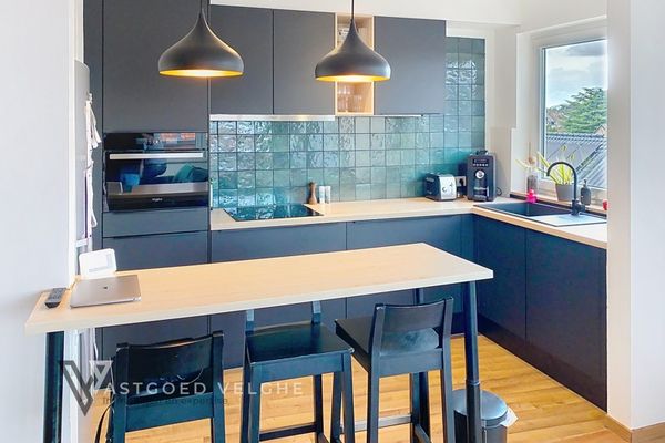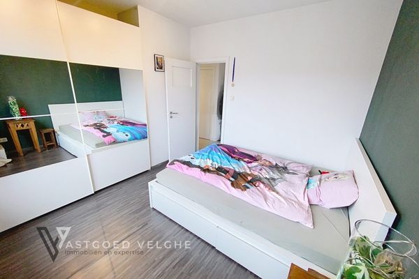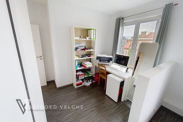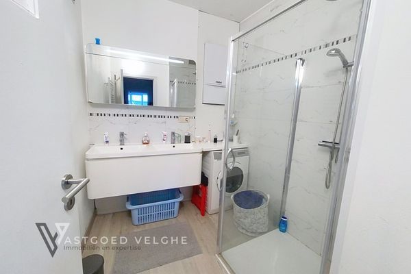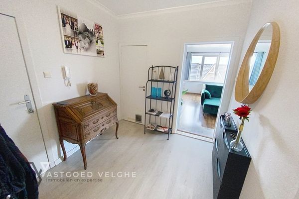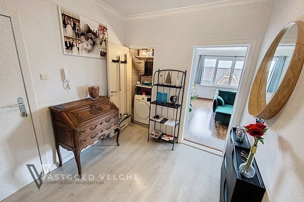 Indeling: Inkomhal, gastentoilet, berging, 2 ruime slaapkamers, woonkamer met open keuken, Bergplaats op verdiep + berging in de kelder.