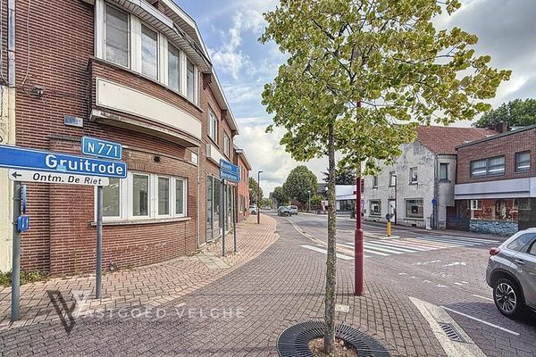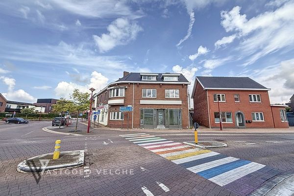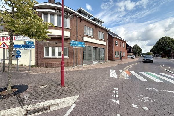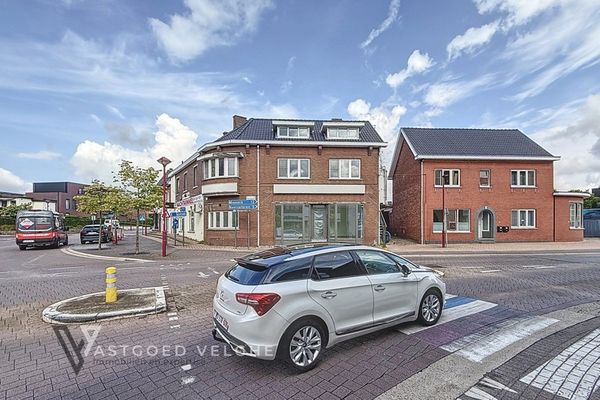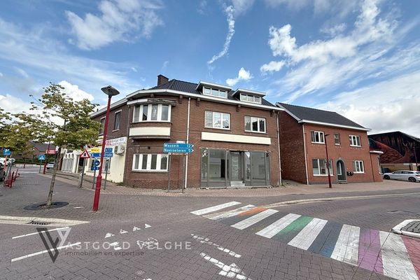 Te renoveren handelspand met duplex appartement op zichtlocatie Optie koop Maaseik