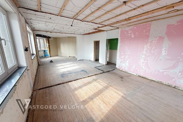 Het pand is reeds volledig gestript en klaar voor aanleg nieuwe technieken en afwerking.